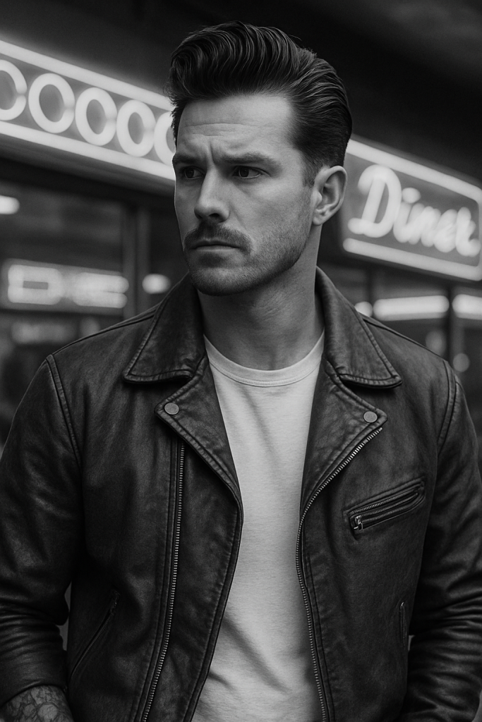 7. Slick-Back Hairstyle – Edgy and Classic 1950s Men’s Hair Look
