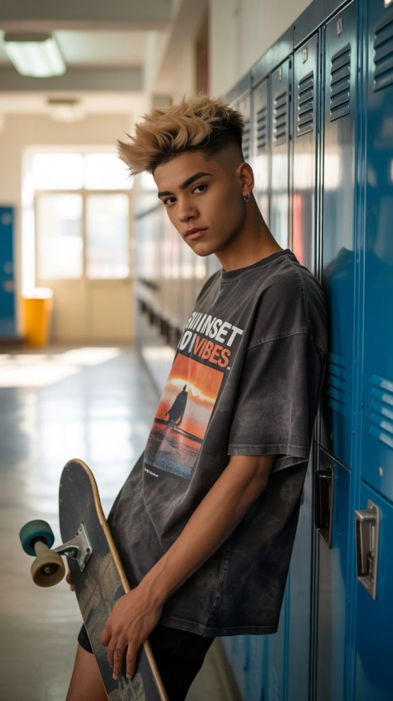 This is a great cut for younger kids who want something cool but not too wild. The mini faux hawk gives a bit of attitude, and the skin fade keeps it tidy and easy to maintain.