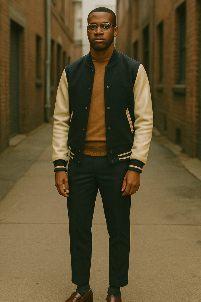 9. Contemporary Vintage: Varsity Jacket + Turtleneck