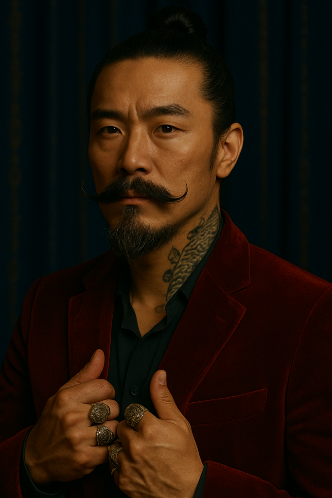 Long and drooping, the Fu Manchu mustache extends past the chin. Itโs a bold choice that demands attention.