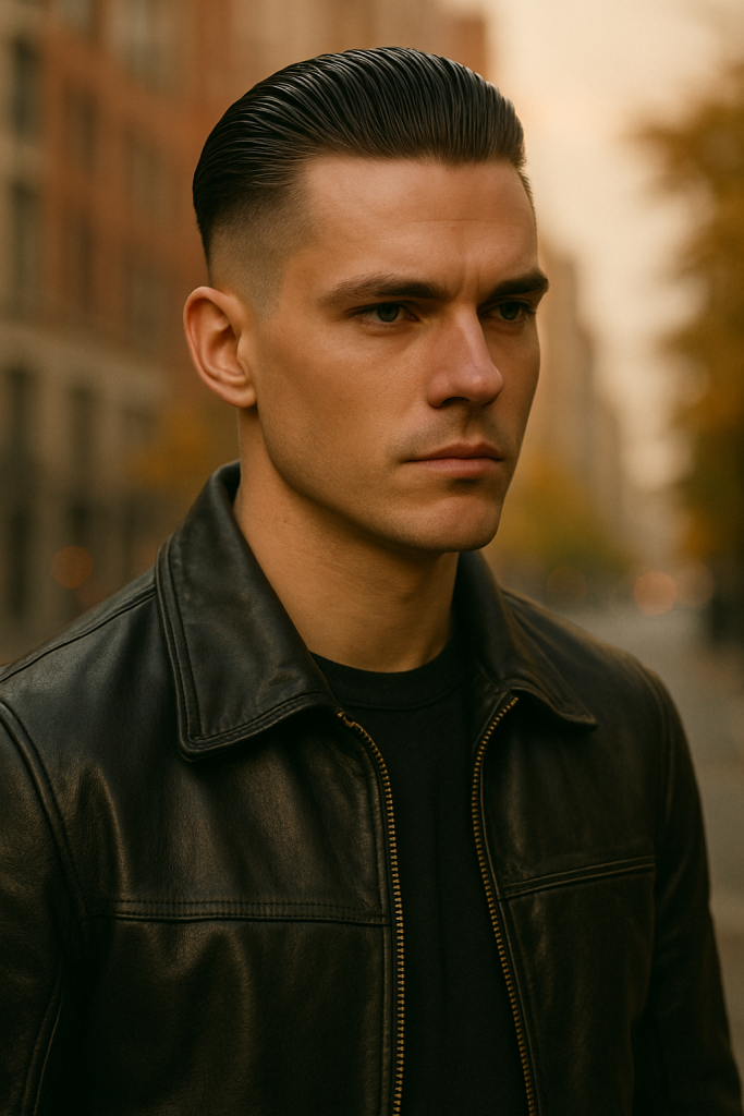 Looking for something sleek and professional? The slicked-back undercut delivers. With longer top hair slicked over short faded sides, it’s bold but classy.