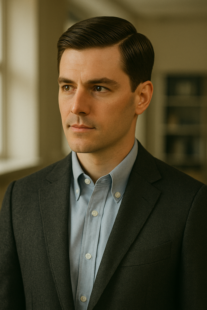 The side part is timeless and screams sophistication. This fall, it’s making a comeback in menโs fashion circles tied to the “Old Money” look.